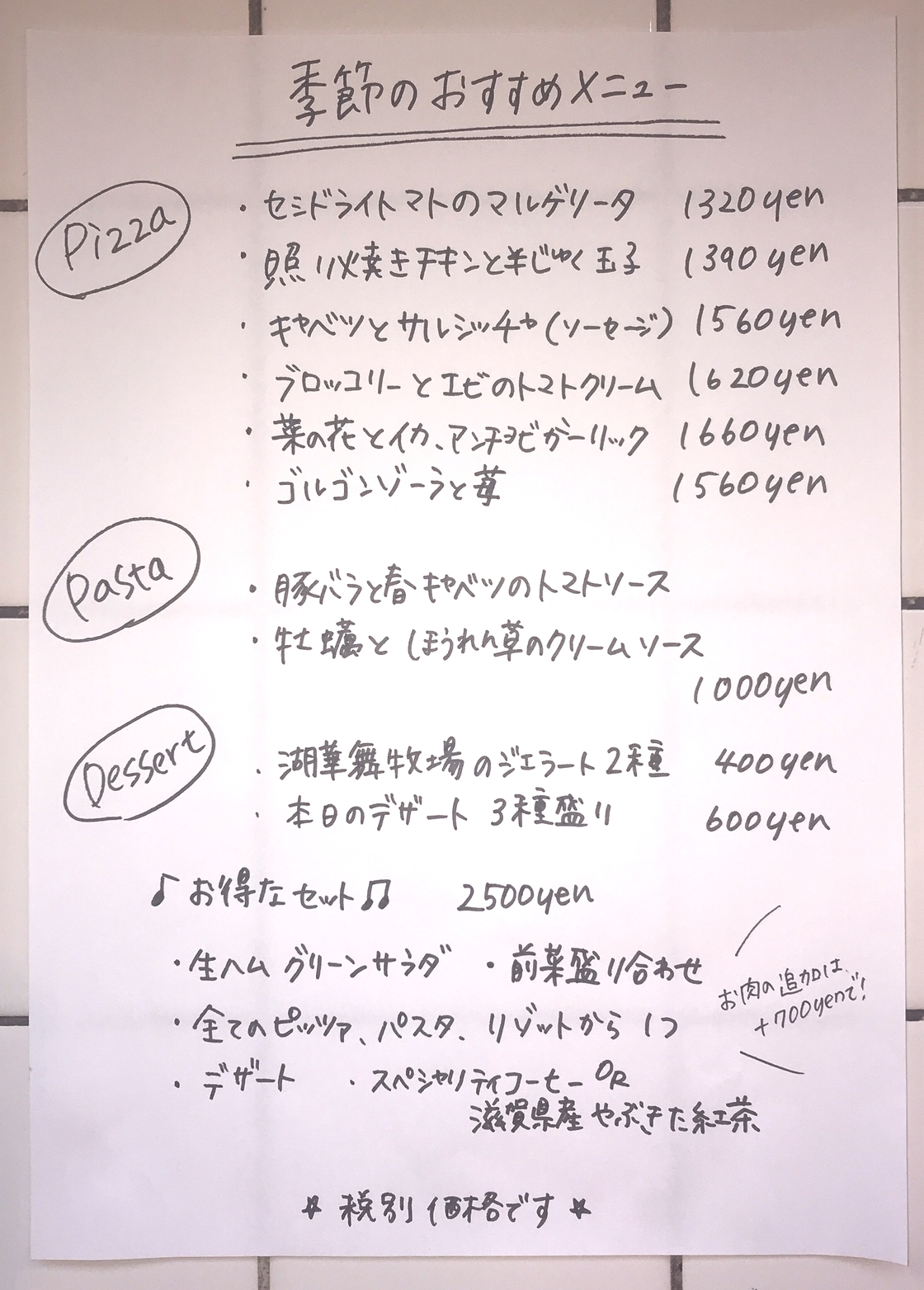 - 全てのピッツァ、パスタ、リゾットの中から1つお選びください