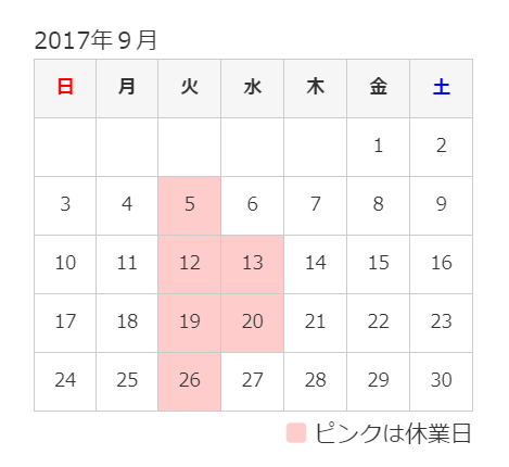 さて、9月の休日のお知らせです。