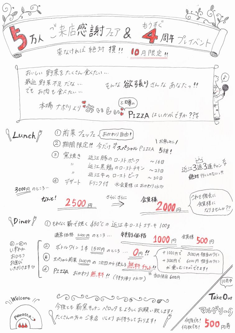 ※ご予約・お問い合わせ時に、ペロッタ会員希望とお知らせくださいませ。
