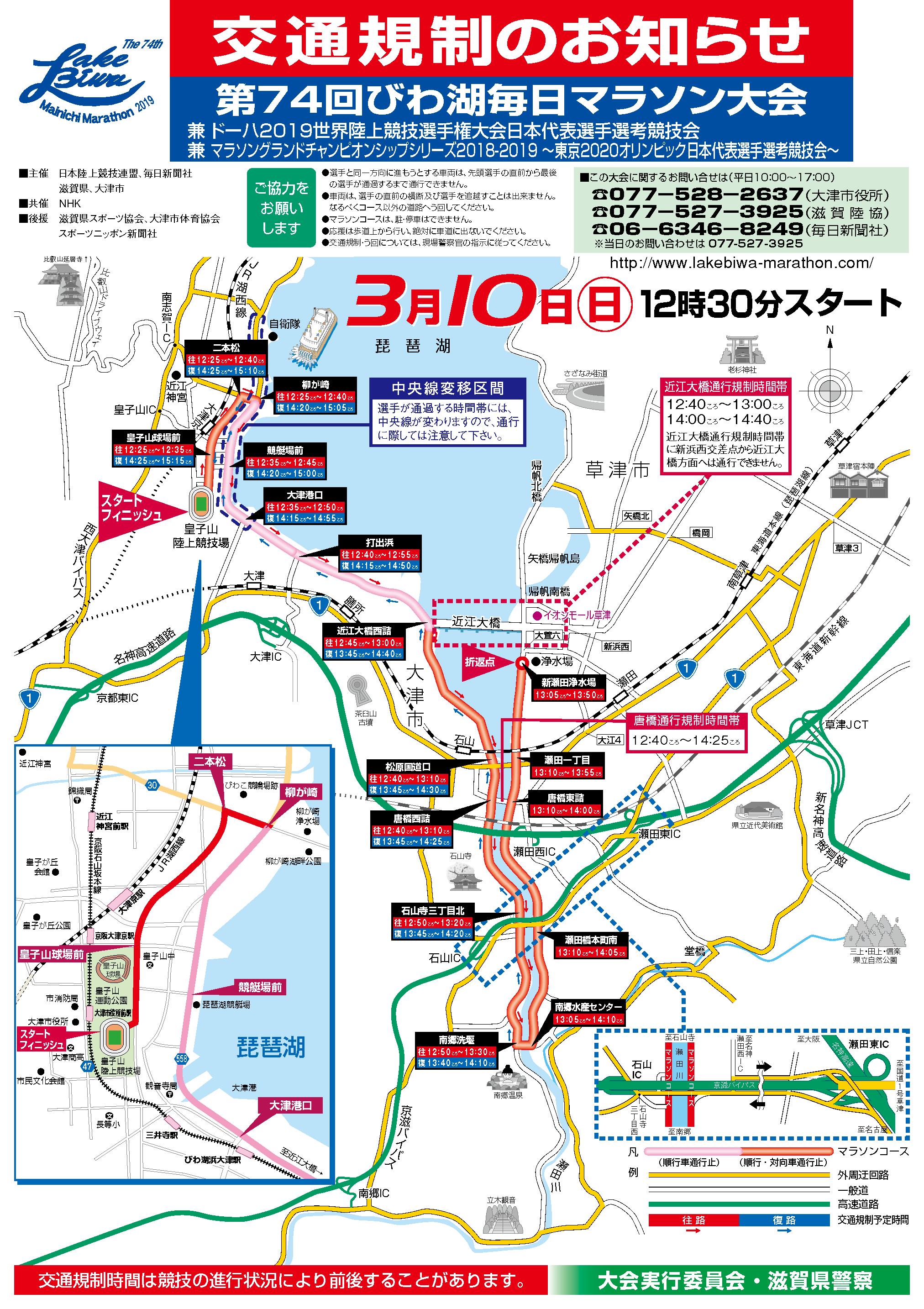 → http://www.lakebiwa-marathon.comそれに伴い、店舗前道路および、周辺道路の交通規制が掛かります。