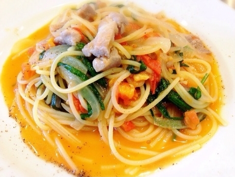 豚肩ロースとニラ、フレッシュトマトのパスタです!