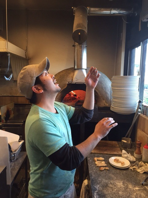 ナポリピッツァは400度以上の高温で一気に焼き上げていきます。