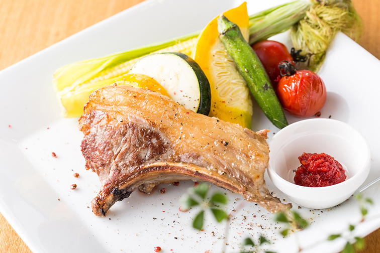 単品では「骨付きラム肉の岩塩焼き、ロースト野菜添え」をご用意いたしました!